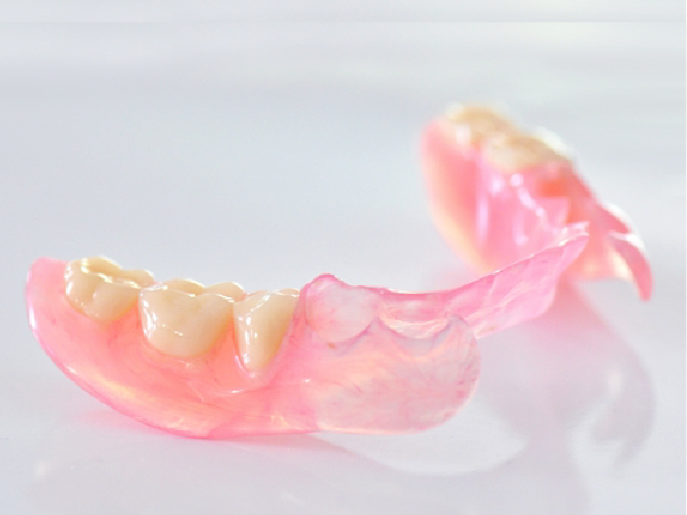 総入れ歯は、人工歯と歯ぐきの代わりとなる床(しょう)から構成されています。全ての歯を失ってしまった場合に使用します。歯を失ったことで、食べ物を噛むことができなくなってしまった方も、再び噛む力を取り戻すことができます。保険診療と自費診療があります。