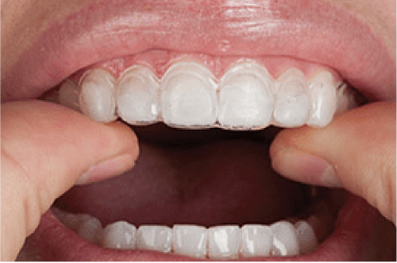 ご自宅でトレーにホワイトニング剤を注入し、歯に装着してホワイトニングをはじめます。