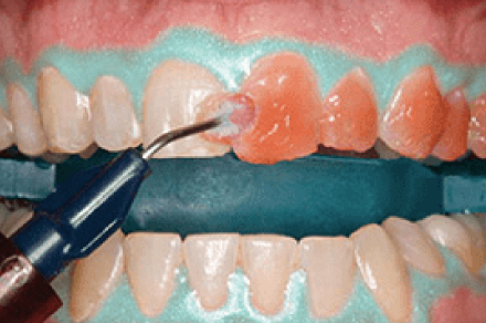 薬剤を歯の表面に塗ります。一度薬剤を塗ってから時間をおき、一度薬剤を吸い取って、再度塗りなおします。